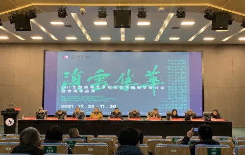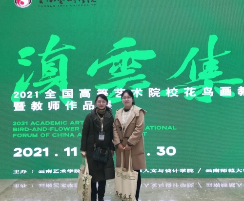 滇云集萃——2021全国高等艺术院校花鸟画教学研讨会暨教师作品展于2021年11月22日上午10:00在云南艺术学院隆重开幕,此次活动系国内花鸟画界最高级别学术活动,自2013年4月由中央美术学院首次举办《为中国画——全国高等艺术院校花鸟画教学研讨会暨教师作品展》以来已成功举办四届。北京语言大学艺术学院绘画教研室主任丁予茜和青年教师邬树乙受邀出席并携学院教师12幅作品参展。丹青集萃,名家雅聚,共同探讨中国现代花鸟画创作和教学研究的新气象。