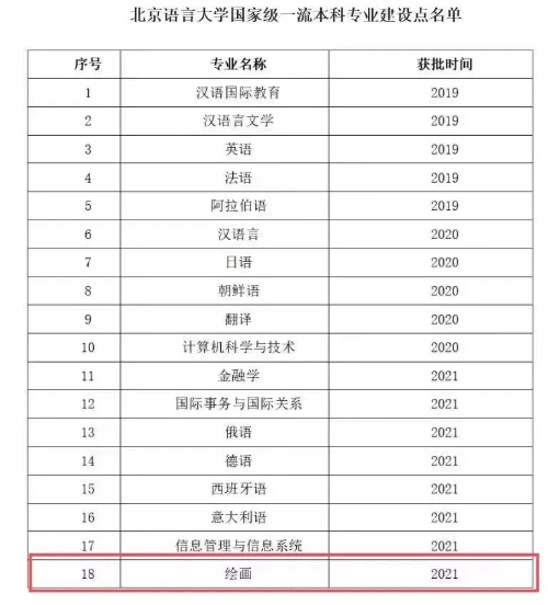 教育部办公厅近日公布了 2021 年度国家级和省级一流本科专业建设点名单,北语金融学、国际事务与国际关系、俄语、德语、西班牙语、意大利语、信息管理与信息系统、绘画8个专业入选国家级一流本科专业建设点。截至目前,北语共有18个专业获批国家级一流本科专业建设点。