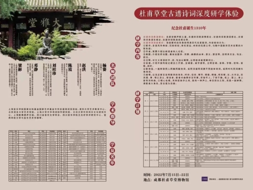为纪念杜甫诞辰1310周年,2022年7月16日-7月21日,上海音乐学院国家社科基金国家艺术基金项目“中华古谱诗词杜甫草堂研学活动”顺利举行。艺术学院党总支书记陈霞、声乐教师董卿与来自全国艺术院校的50名学者、学员共同参加了此次研学活动。
