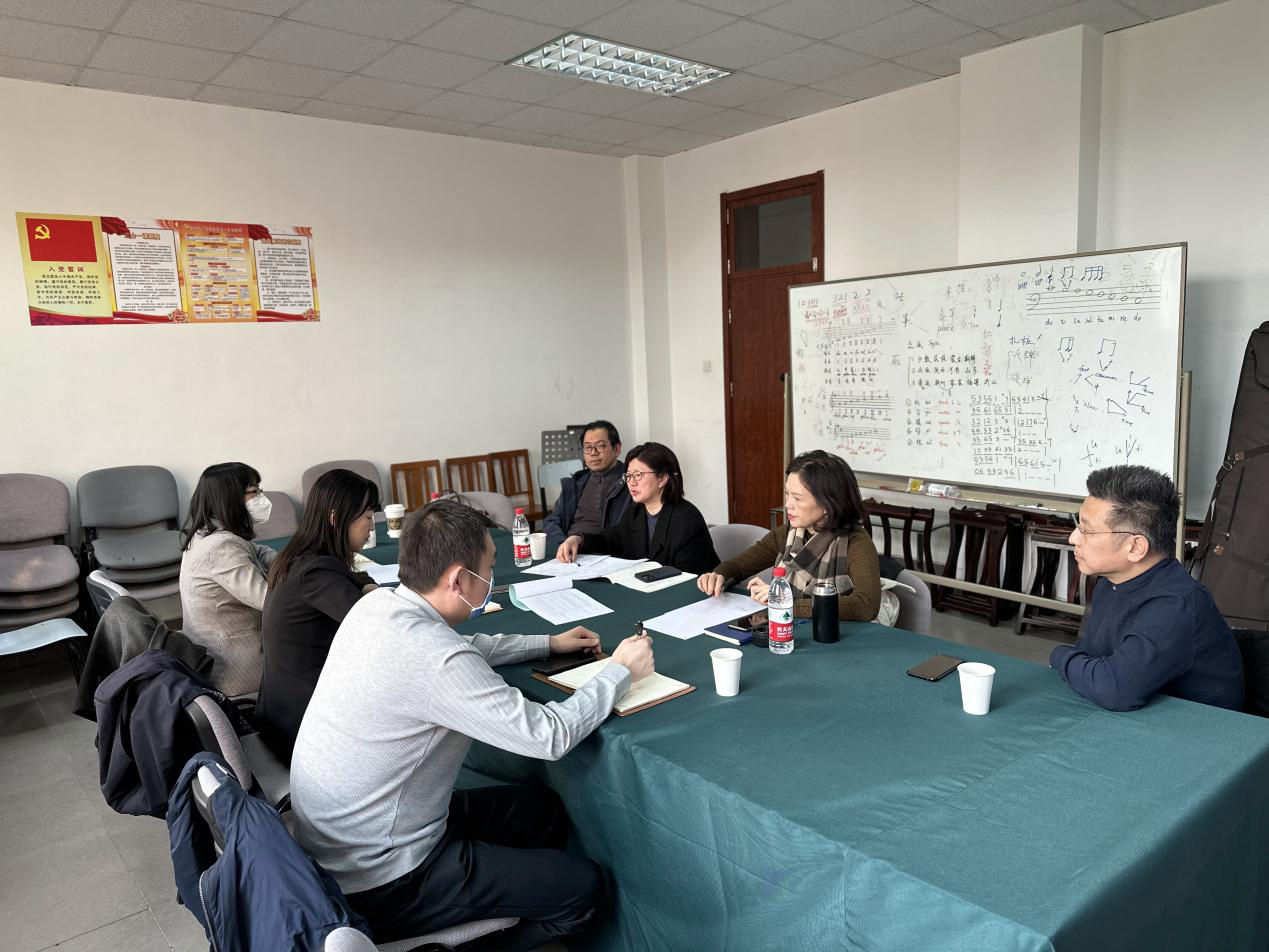 聂丹副校长在听取了艺术学院的汇报之后,充分肯定了艺术学院在专业建设、人才培养、教师发展方面取得的成绩,特别是艺术学院为全校美育工作做出的贡献。认为艺术学院经过短短几年的建设,师资队伍初具规模,学院建设目标明确,定位准确。聂丹副校长指出,艺术学院未来的发展要遵循四个原则:一要坚持差异中求发展的办院定位和专业定位;二要以课程为抓手优化人才培养和办学路径;三要增加跨专业、跨学院、跨学校的横向联系和融通;四要增强艺术实习实践平台建设。同时聂丹副校长就教师激励机制、精品课程和特色教材打造,促进教学科研一体化发展等方面提出指导意见。教务处王瑞烽处长、教材研究院院长郭风岚分别对艺术学院的本科教学、教材建设规划等方面的工作提出意见和建议。