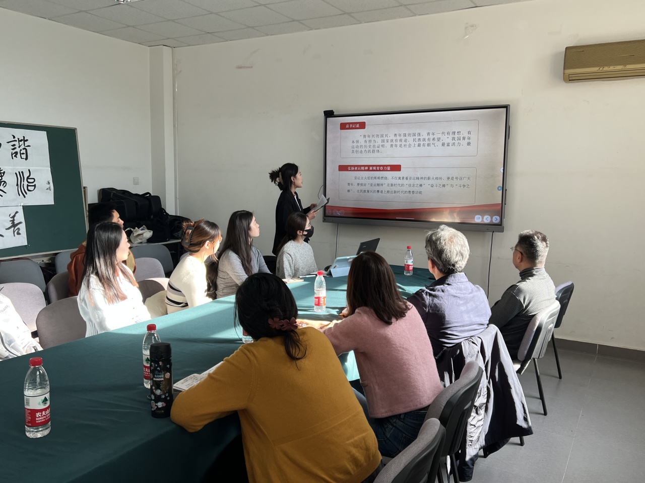 10月7日至8日,全国宣传思想文化工作会议在北京召开,会上首次提出了习近平文化思想。北语师生迅速掀起学习习近平文化思想的高潮,并将学习成果和自己的专业紧密结合,贯彻落实习近平文化思想。11月14日,北京语言大学艺术学院21级本科书法专业的同学围绕着习近平文化思想的学习,开展了一次主题团日活动,并邀请北京语言大学党委常委、副校长张宝钧出席活动。艺术学院党总支书记陈霞、副院长史大鹏、党总支副书记王杨参加活动。分享会由21级书法一班孙家宜同学主持。