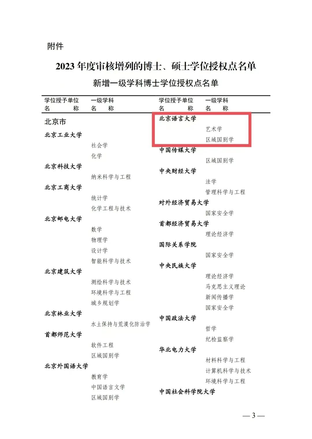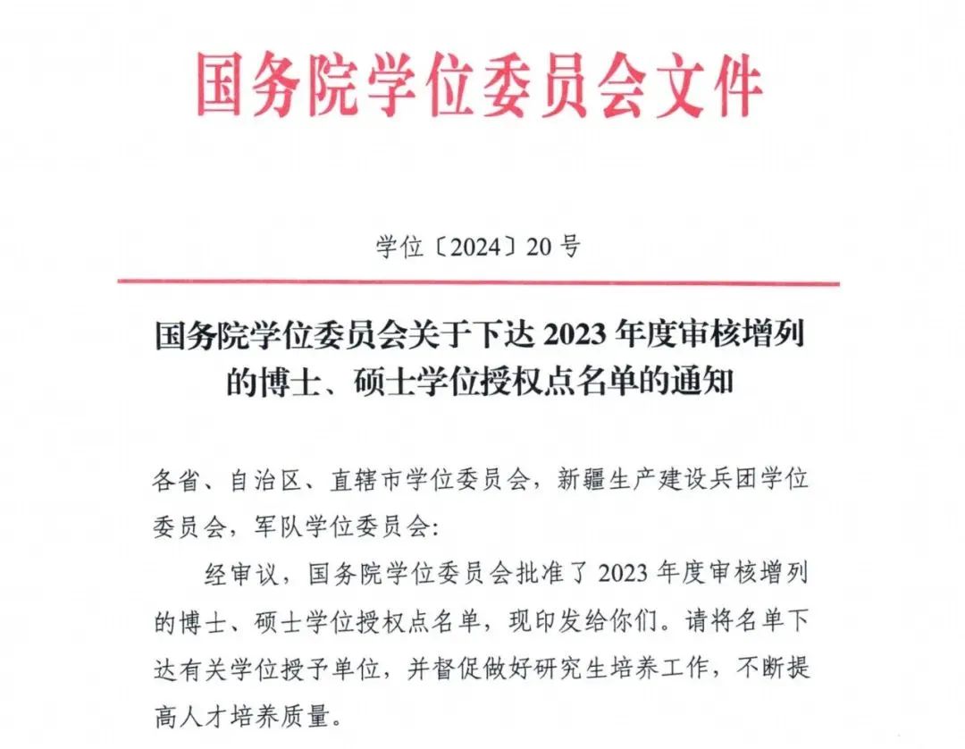 日前,国务院学位委员会正式发布关于下达2023年度审核增列的博士、硕士学位授权点名单的通知。北京语言大学新增艺术学、区域国别学2个一级学科博士学位授予点,音乐、数字经济、国际事务、博物馆4个硕士专业学位授予点。这标志着我校学科建设和研究生培养工作取得重大突破,步入跨越式发展新阶段。