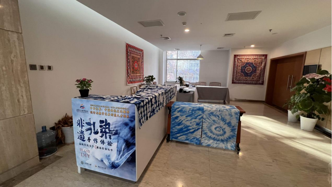 展览采用虚拟和现实相结合的方式,体现了传统和科技的融合,展示了服饰文化的多样性与多元化。展览现场设有扎染体验区,学院师生积极尝试,感受到传统文化独特的艺术魅力。
