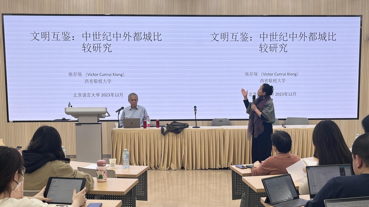 2023年12月7日下午2:00,由北京语言大学艺术学院学术委员会及科研处主办,北京语言大学比较文学研究所、外国语学部“文化遗产发展”中外合作办学项目协办的艺术学院“国际艺术传播研究专题”系列讲座之一《文明互鉴:中世纪中外都城比较研究》,在北京语言大学教二楼101教室顺利举行。
