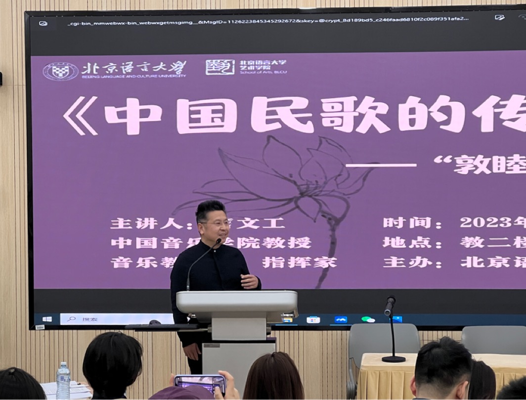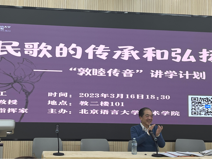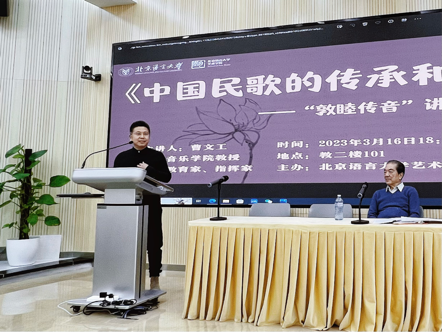 2023年3月16日18:30,由中国音乐学院曹文工教授主讲的《中国民歌的传承与弘扬》“敦睦传音”讲学计划系列讲座在北京语言大学教二楼 101教室顺利开展。