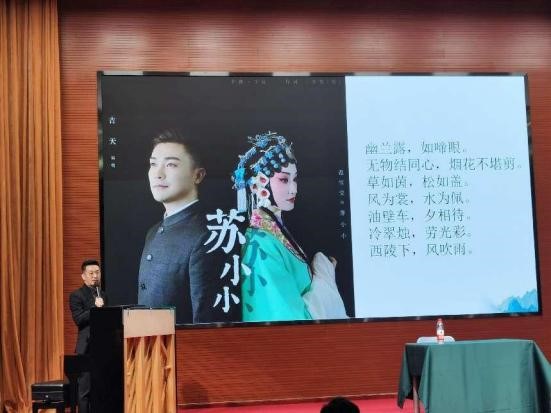 王龙老师与中国音乐学院博士吉天老师合作完成新作《苏小小》。两位老师默契配合,现场气氛达到高潮,鼓掌声经久不息。