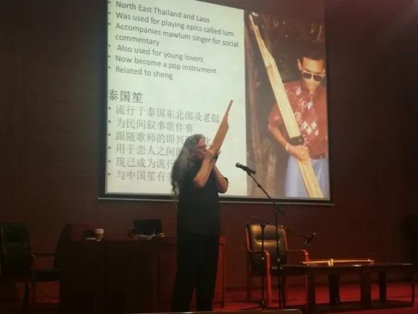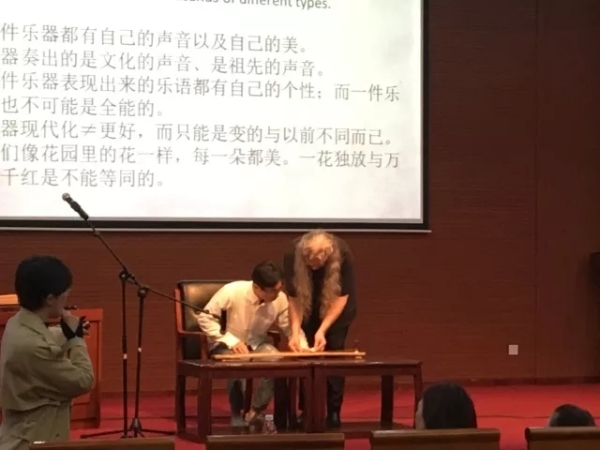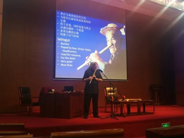 在讲座的最后,他告诉大家:每件乐器都有自己的声音以及自己的美,都是文化的声音以及祖先的声音,它们都有着自己的个性,都无法被替代,我们应该尊重与爱护自己民族的乐器,珍爱自己民族的文化。