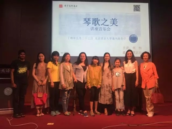 松沉而旷远的散音,如天籁般的泛音,丰富的按音,三音交错,形成一曲曲美妙的音乐。跟着何怡老师的琴声和歌声,仿佛在场的每一个人都平静了下来,忘记心中的杂念,体验内心的喜悦,感受琴声的美妙。